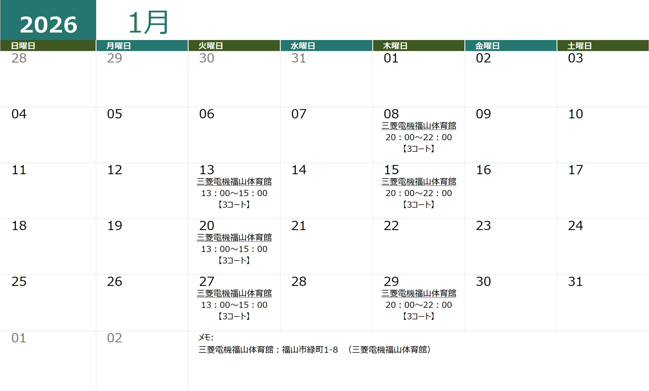 | 1月 | |