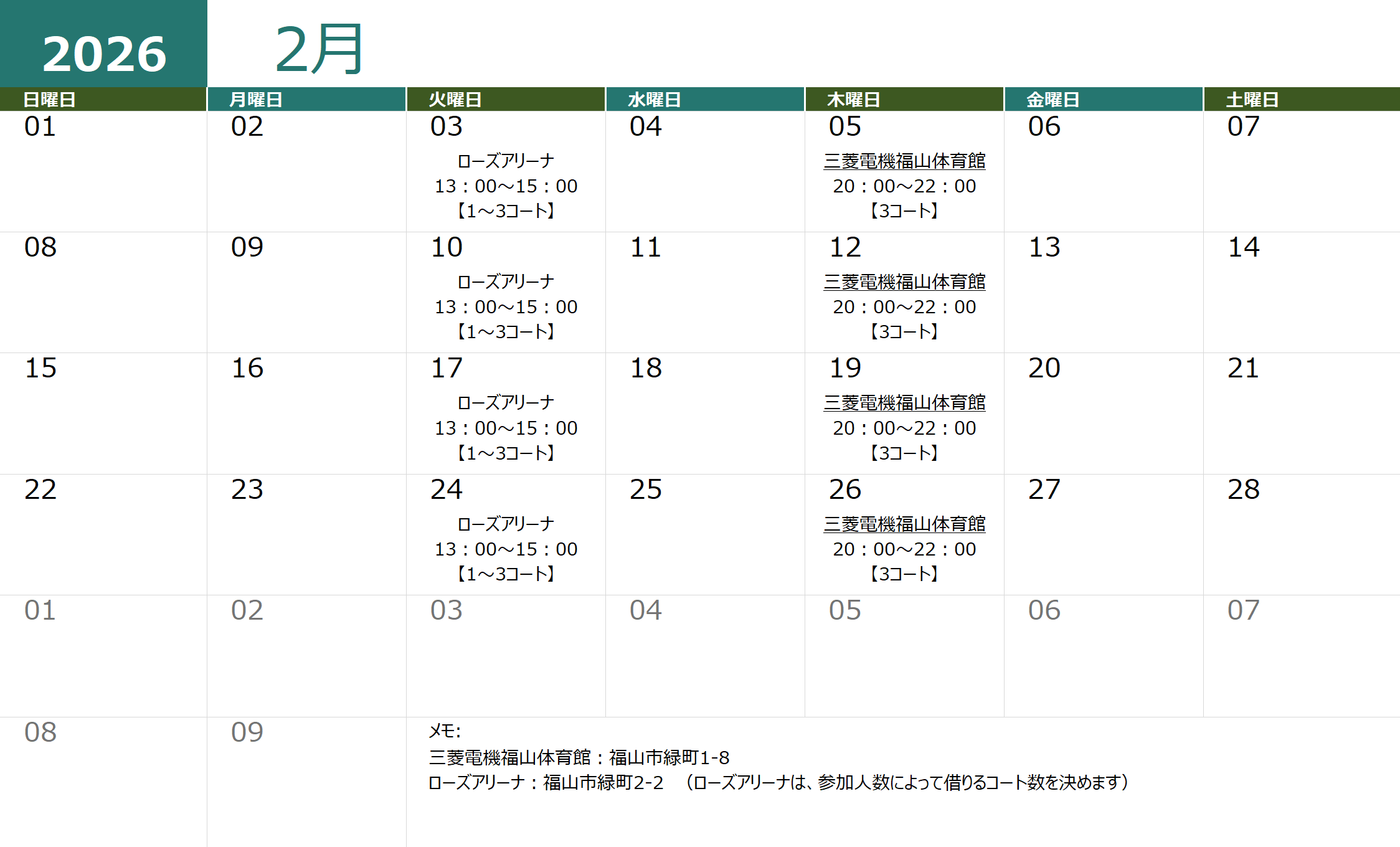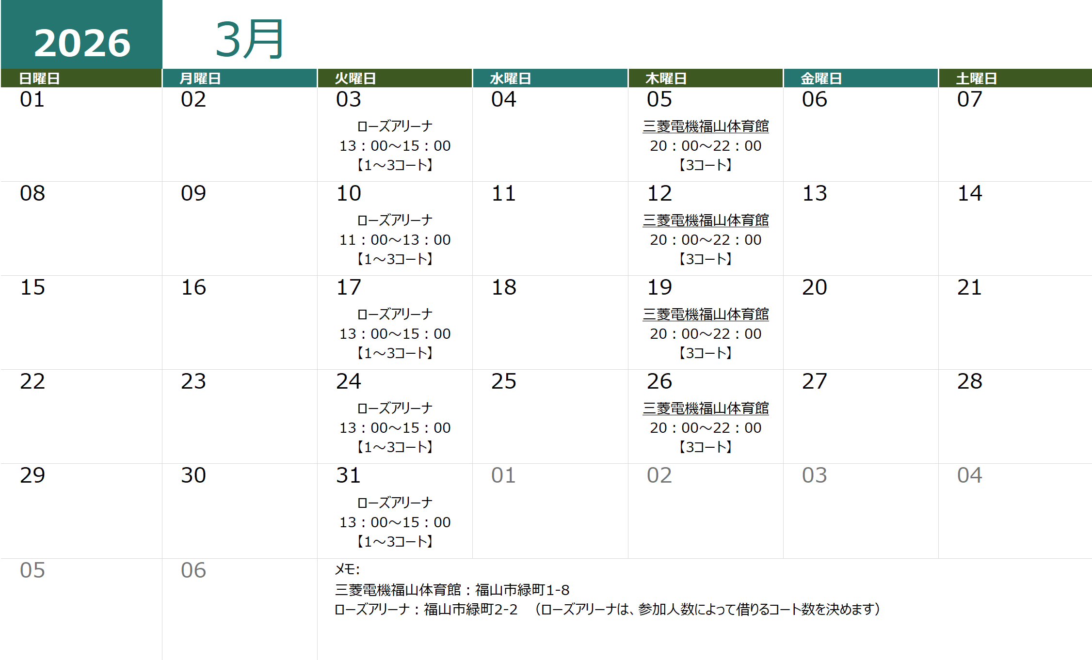| 11月 | 【オープン戦】第2回ピックルボール備後カップ |